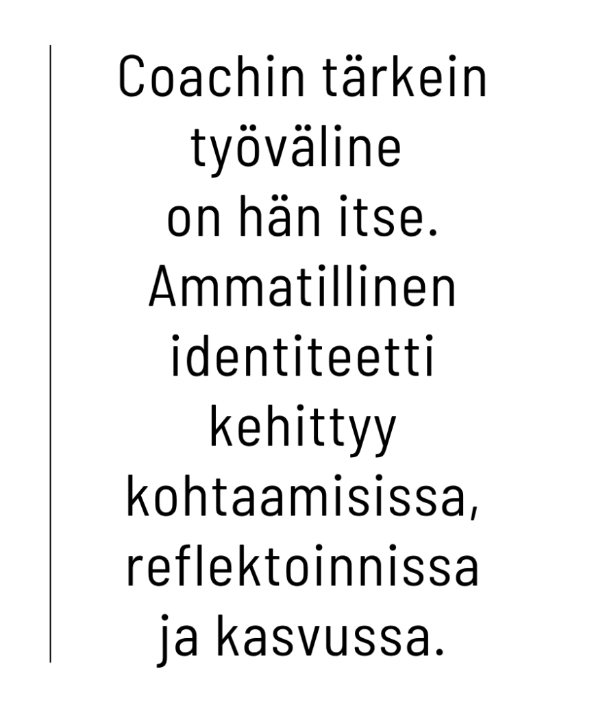 - Coach reflektoi säännöllisesti, kuka hän on ammattilaisena ja miten identiteetti näkyy työssä.